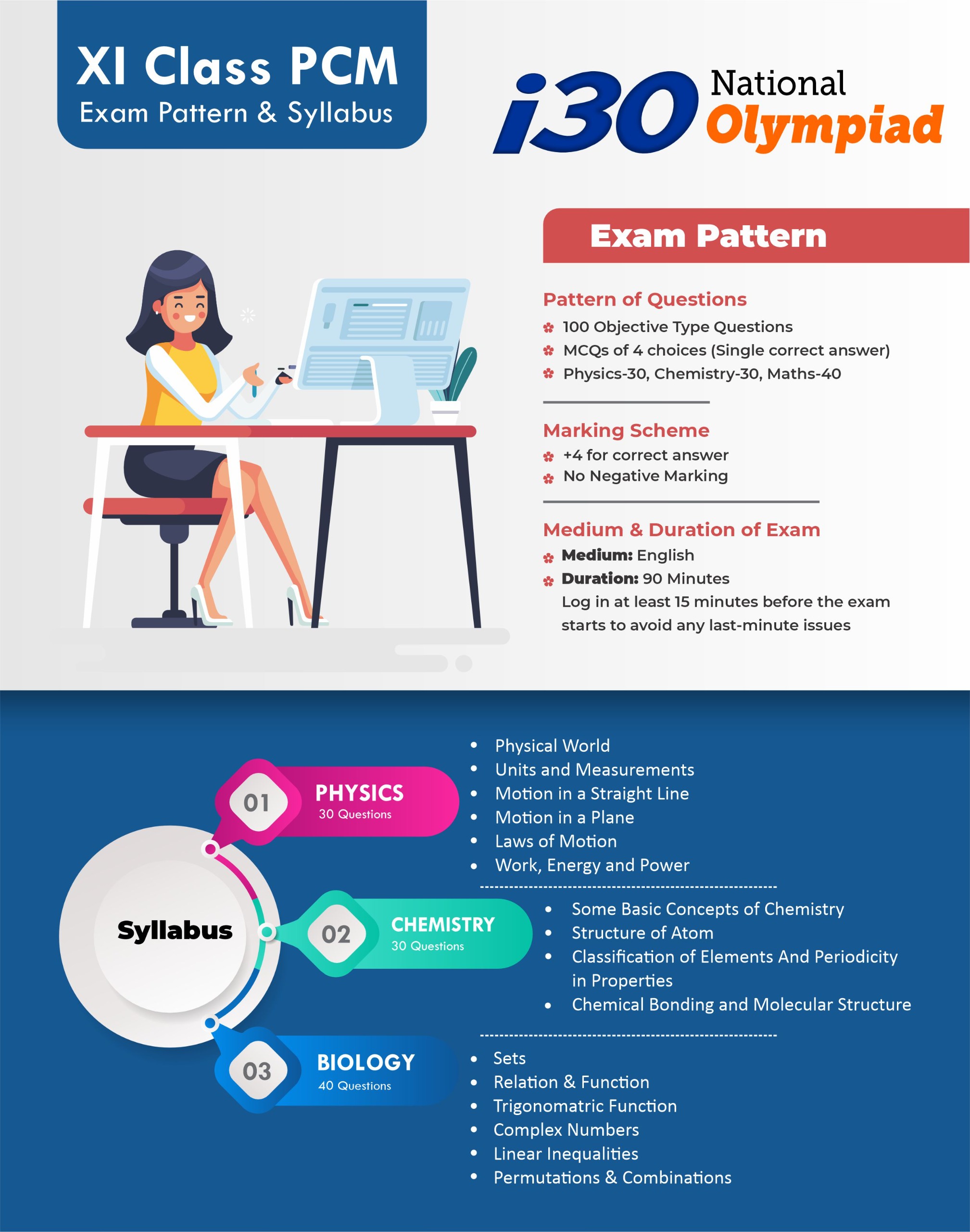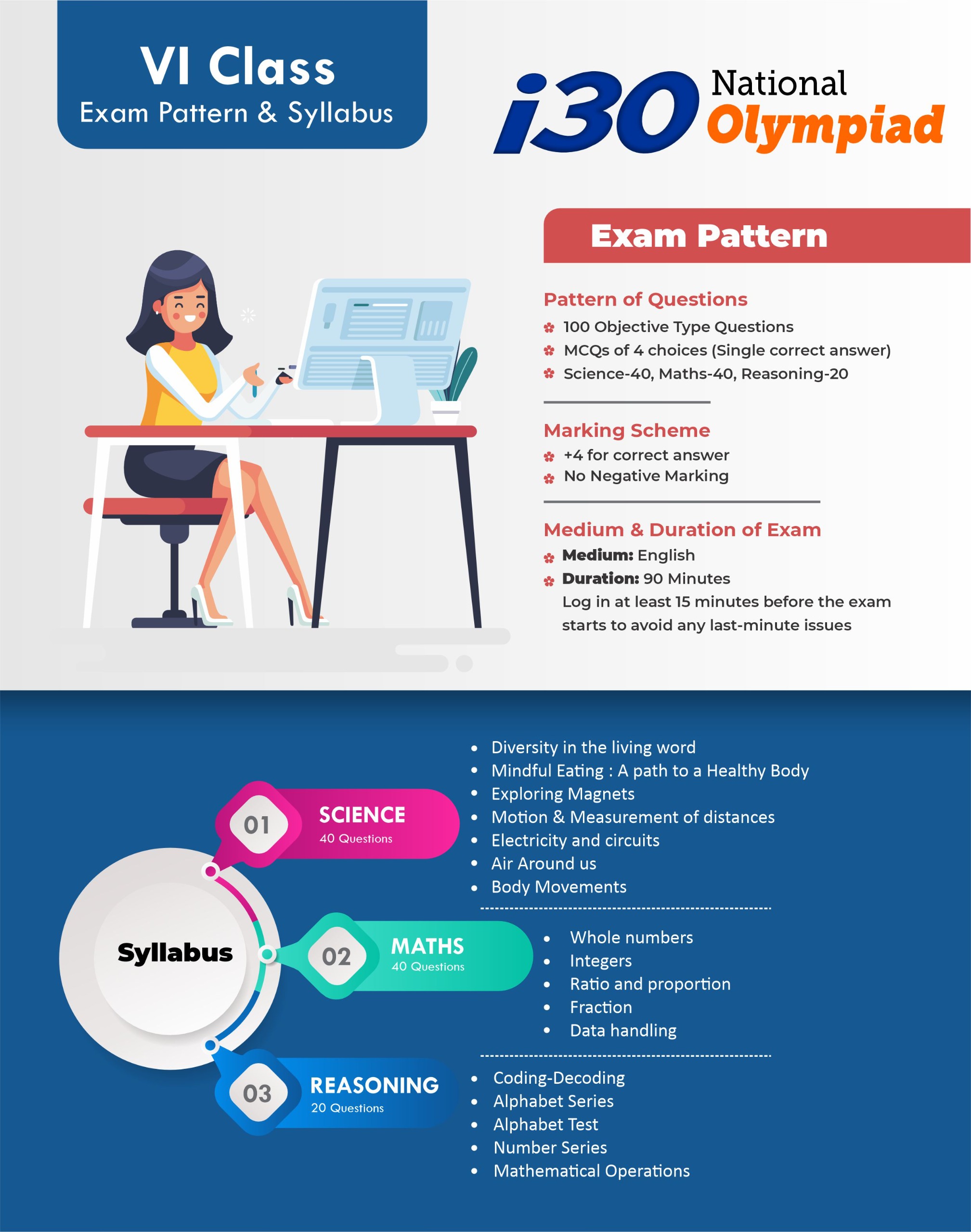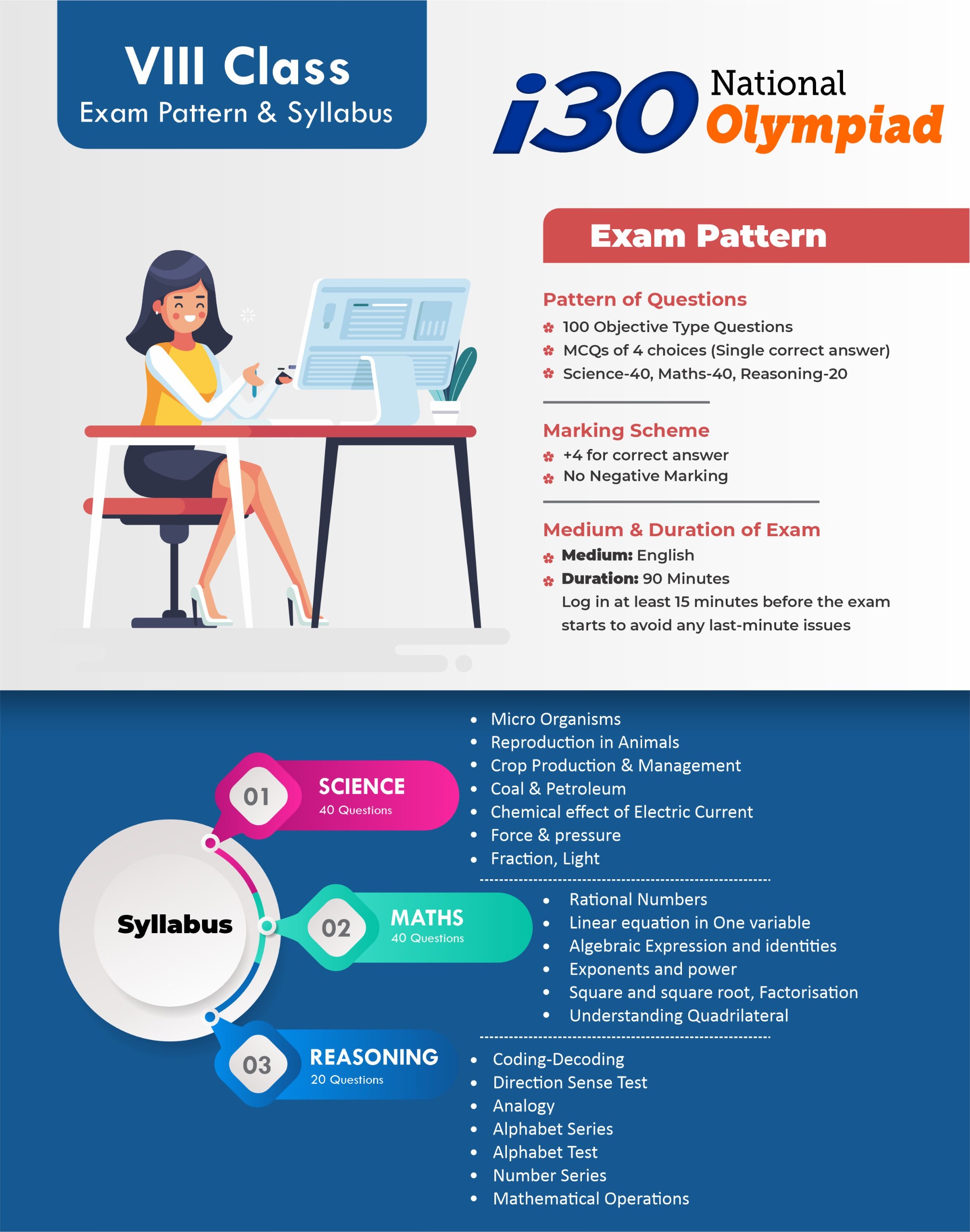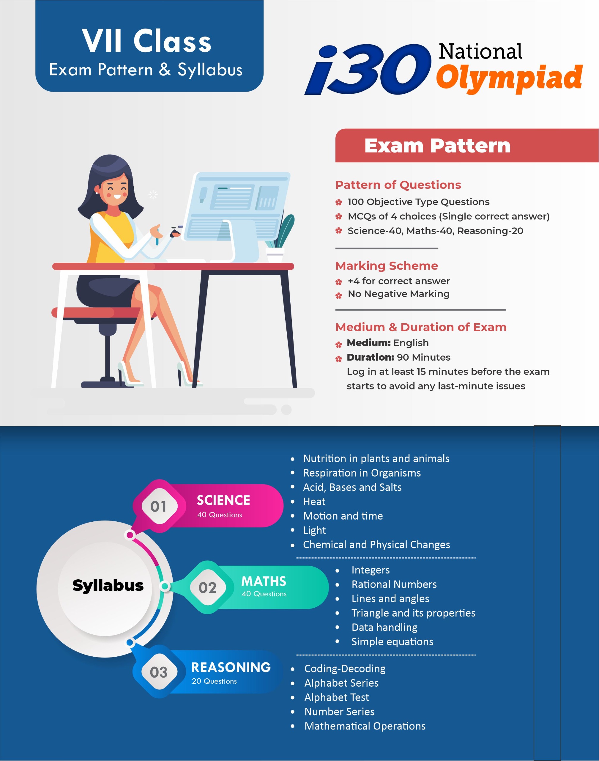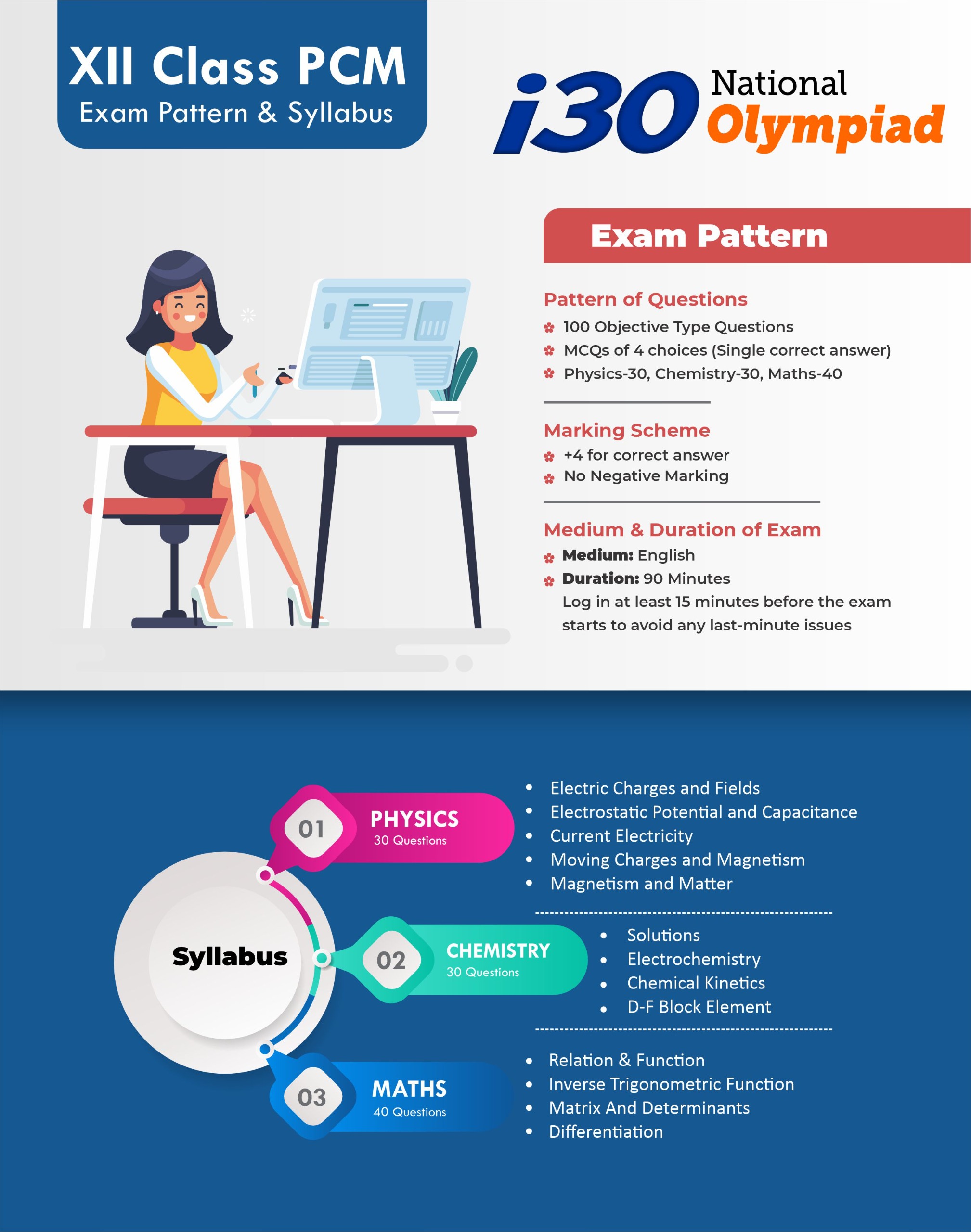 The i30 National Olympiad is a prestigious Talent Hunt and Scholarship Examination conducted by i30 Learning Centre, Neemkathana, for school students from Class V to XII (including droppers).