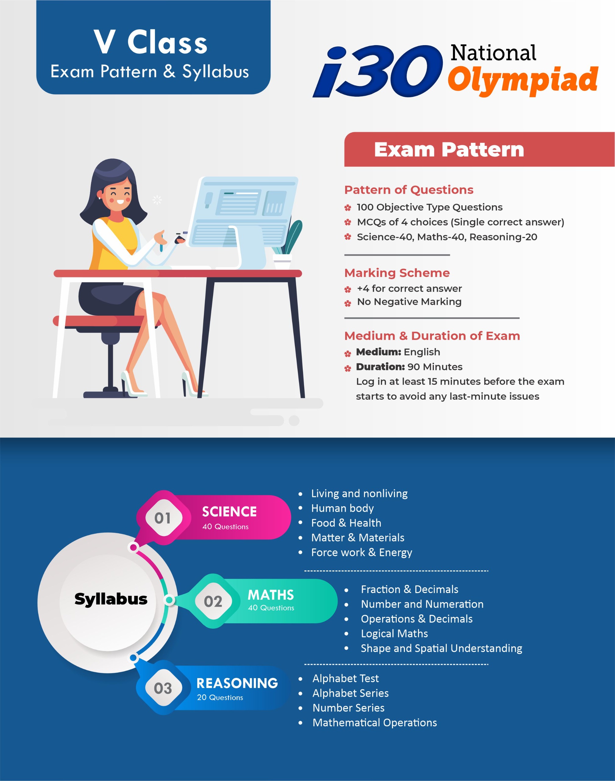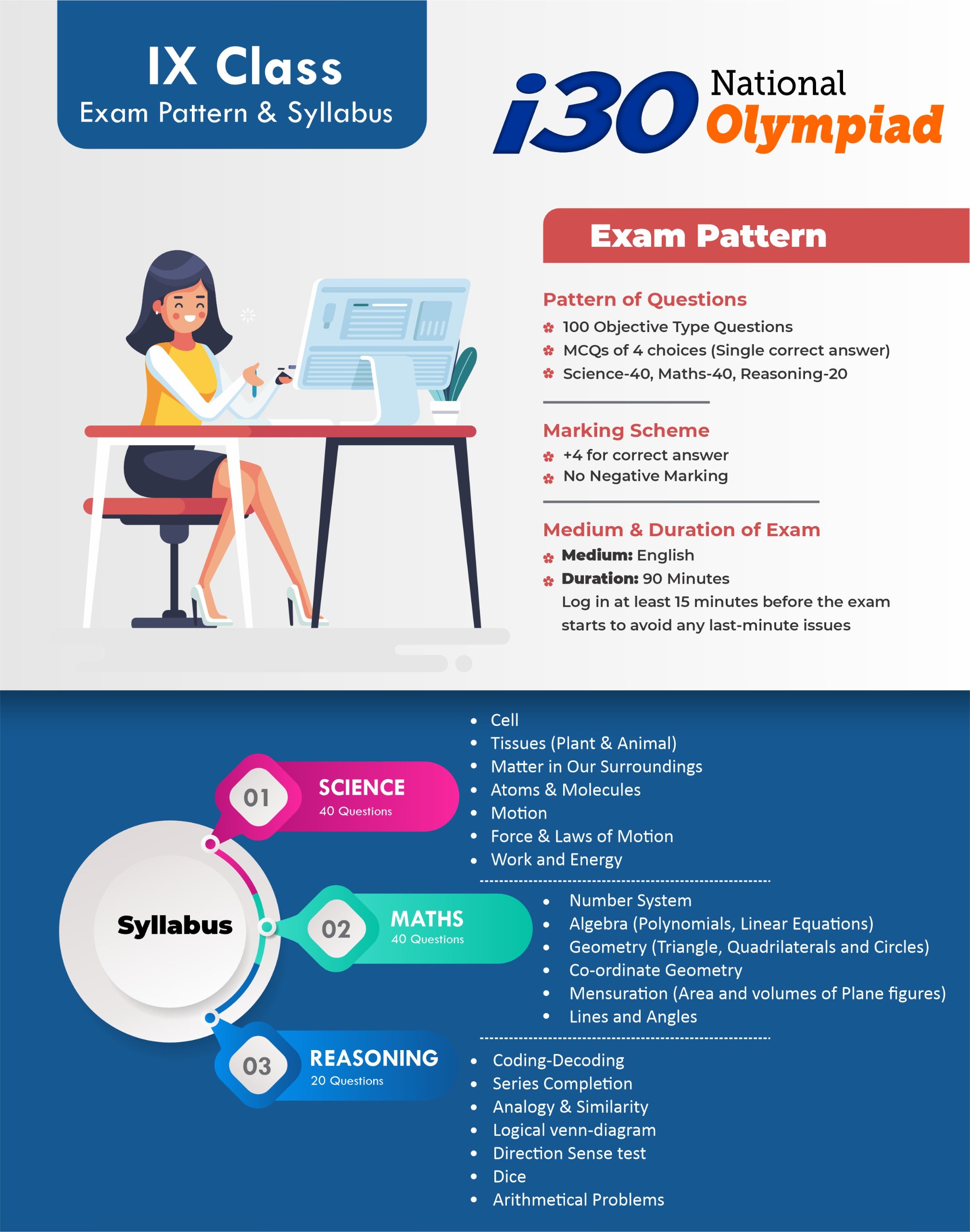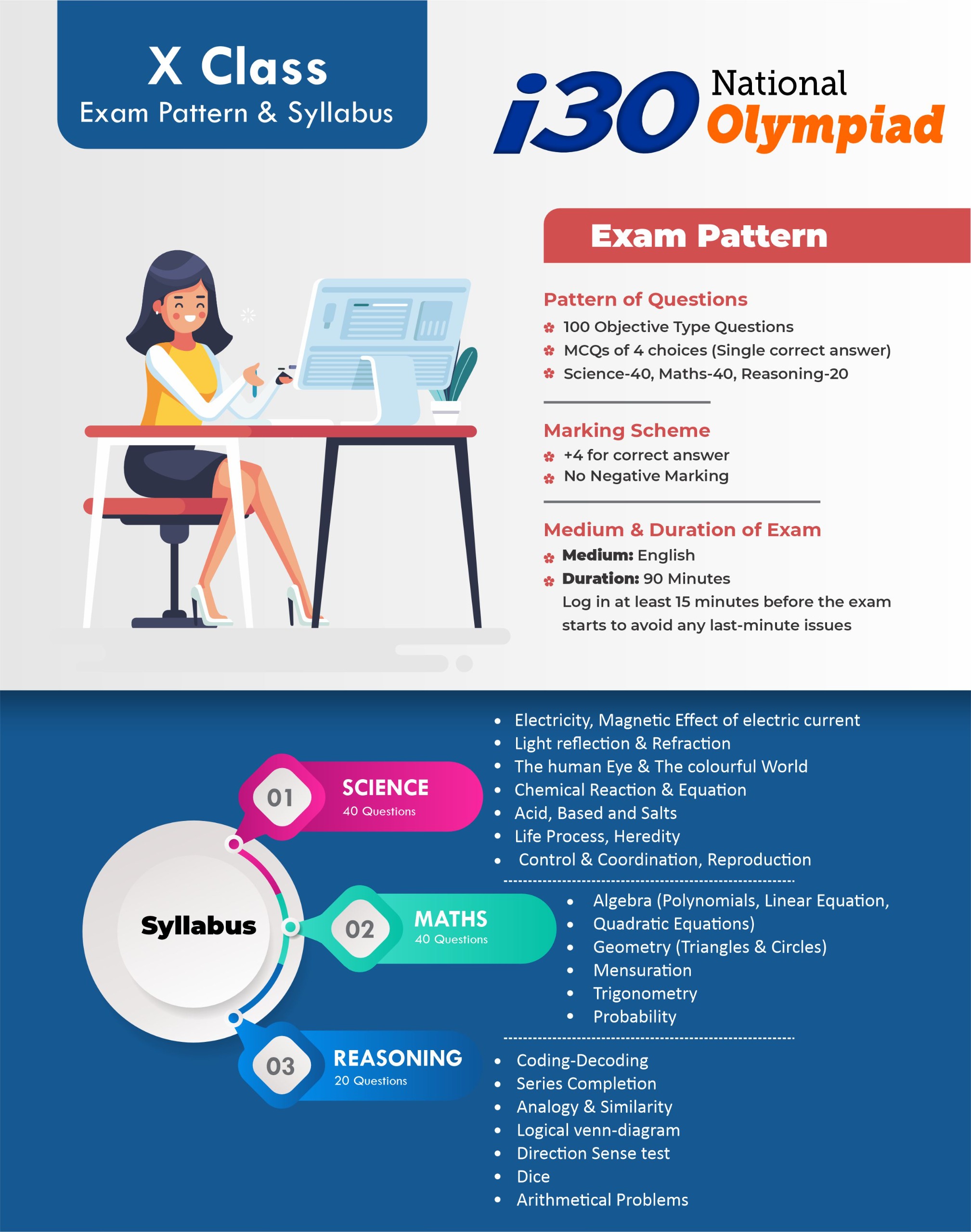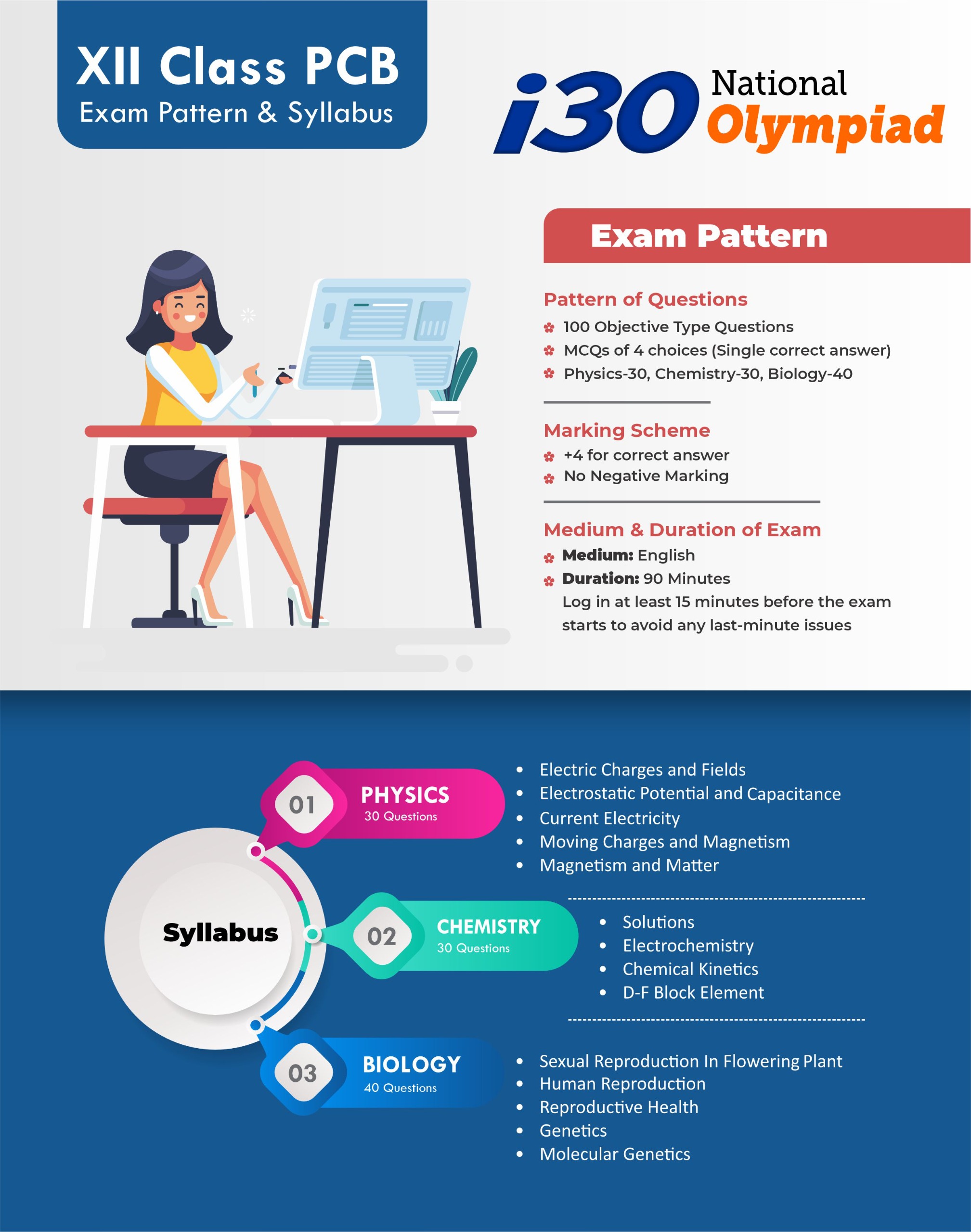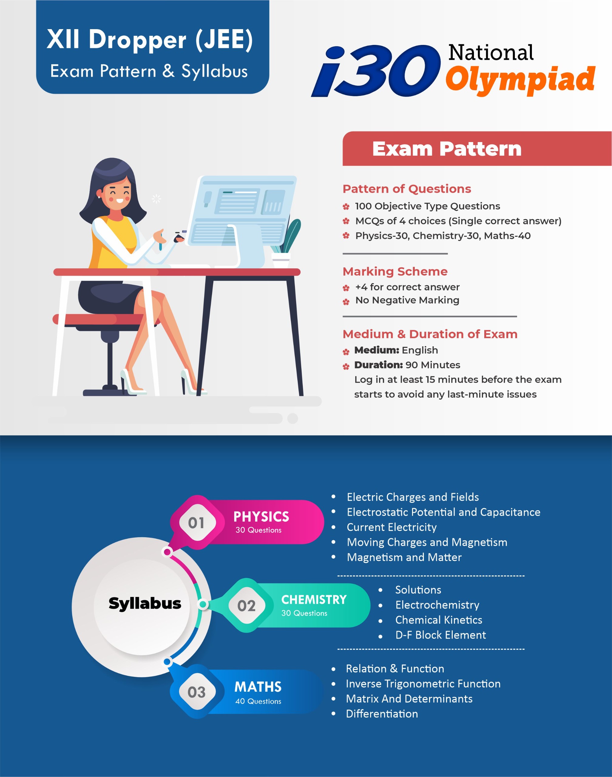 The i30 National Olympiad is a prestigious Talent Hunt and Scholarship Examination conducted by i30 Learning Centre, Neemkathana, for school students from Class V to XII (including droppers).